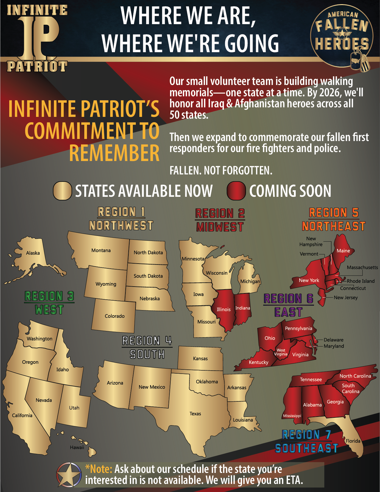 Join us in getting our state based American Fallen Heroes - Iraq/Afghanistan Killed in Action walking memorials on everyday Americans' backs. All proceeds go to veterans and first responders.