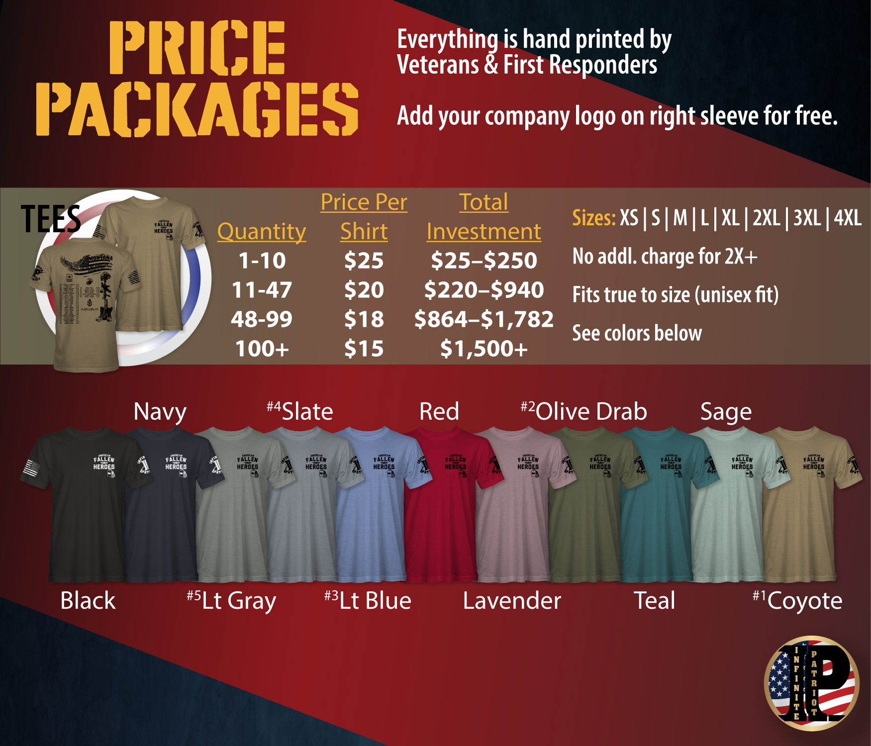 Tag us on social media or send pics to info@infinitepatriot.com so we can post on our “Honor Our Heroes” page.